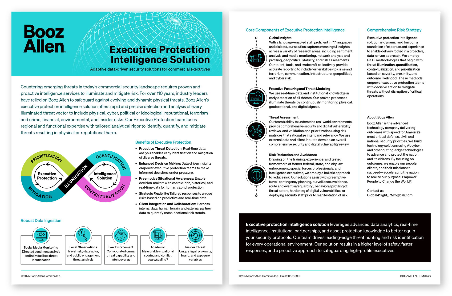 Designed fact sheets describing Booz Allen's products and services in advanced technology.