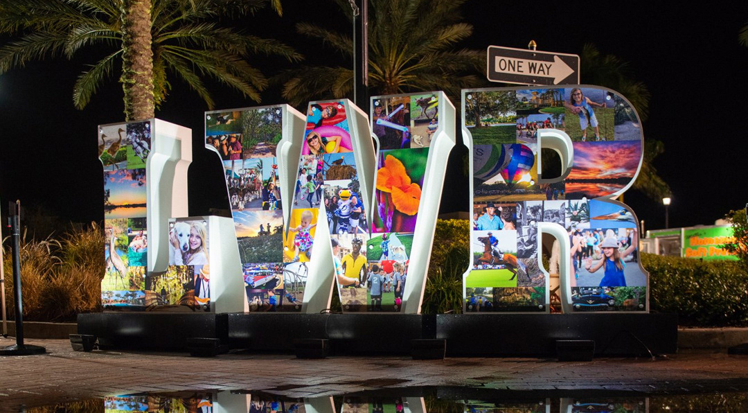 6' tall, 3D letters for the Lakewood Ranch community in Sarasota, FL. The bases include wheels so they can be moved to different locations. Sign faces are removable and changed throughout the year.